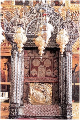 Мы не можем доказательно ответить на вопрос. Поскольку достоверных изображений Иконы нам неизвестно. Более того, как сообщает, например, архиепископ Сергий в своем фундаментальном труде «Полный Месяцеслов Востока», в известной книге XIX века «Изображения икон Пресвятой Богородицы», помещено неверное изображение этой Иконы. Следует кстати отметить, что праздник этой известной Иконы приходится на 26 декабря старого стиля, то есть сразу на другой день после Рождества. Этот день в святцах так и называется – Собор Пресвятой Богородицы .