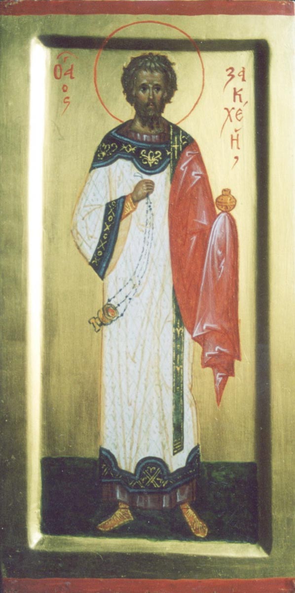 В Кесарии Палестинской, с приближением двадцатилетия царствования императоров, заключенным в темницах объявлялось обыкновенно прощение преступлений. Так было и в царствование Диоклитиана. При этом правитель области, даровав свободу даже величайшим преступникам, христиан подверг жесточайшим мучениям. В это время за исповедание Христовой веры был схвачен диакон Гадаринской церкви Закхей1. Спрошенный на судилище о вере, он смело и безбоязненно исповедывал Христа. За это его подвергли жестоким истязанием: секли розгами, затем терзали когтями и, наконец, забив ноги его в колодки, ввергли в темницу. Святой доблестно переносил мучения. Когда мучили святого Закхея, приведен был на судилище еще один исповедник за имя Христово, именем Алфей. Он происходил из знатного рода и был родственником Закхея, родился же в Палестинском городе Елевферополе2. Когда началось Диоклитианово гонение на христиан, Алфей занимал должность чтеца в Кесарийской церкви. Гонение, воздвигнутое на исповедников Христовой веры, было очень жестоким, и многие из христиан не снесли тяжести мучений, отпали от веры Христовой и уже готовы были принести жертвы идолам. Тогда Алфей, ревнуя о Боге, вбегает в толпу отпавших и отвлекает их от идольских жертв. За это он было схвачен и в оковах отведен в темницу. Через несколько дней его подвергли таким же мучениям, как и родственника его Закхея: терзали розгами, раздирали когтями, и, наконец, заковали в одну колодку вместе с праведным Закхеем. В таком положении они пробыли ночь и день. Когда и после сих мучений, святые мученики продолжали непрестанно исповедывать Христа, их обезглавили3. Так скончались святые мученики, претерпев многие страдания за имя Христово.